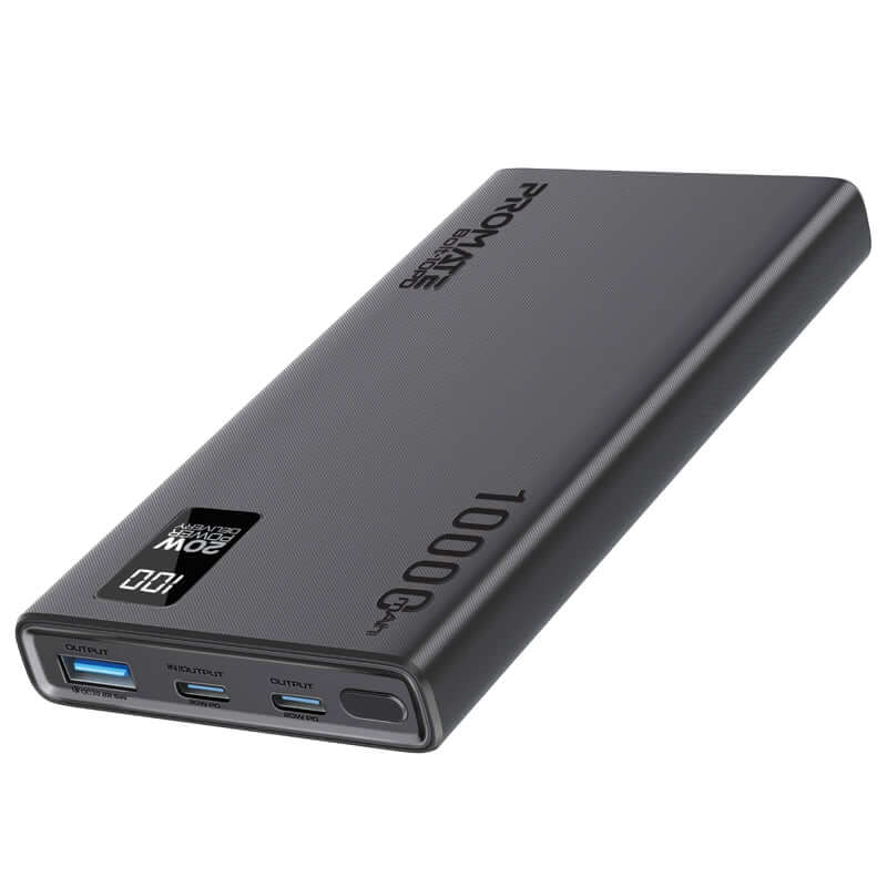 Bolt-10PD Promate Power Bank 10000mAh | Ultra-Slim Portable Charger with 20W Type-C Input/Output Port, 22.5 QC 3.0, LCD & Over-Heating Protection, Fast Charging Power Bank for iPhone and Android
