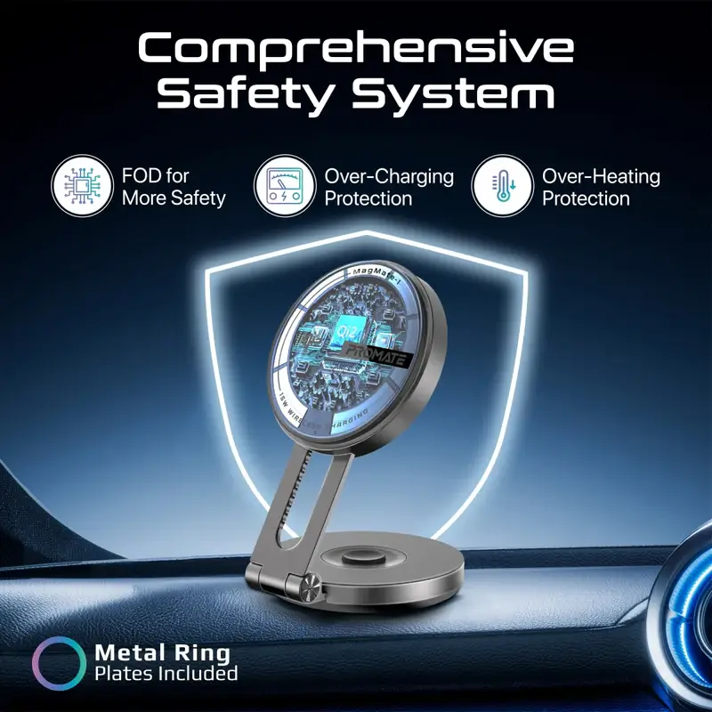 - Universal Compatibility for All Your Devices: MagMate-1 works seamlessly with Apple, Samsung, Google, and other Qi-enabled brands, including iPhones, Galaxy series, and Pixel devices. The included metal ring adapter ensures even non-MagSafe devices can enjoy stable magnetic alignment and wireless charging convenience.