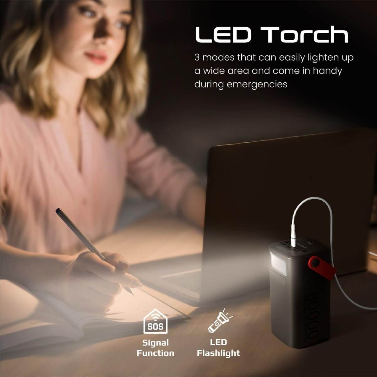 • LED Torch: This power station sports an LED light with 140lm/280lm brightness, and 3 modes that can easily lighten up a wide area and come in handy during emergencies. This device is perfect for all your trips and outdoor adventures.