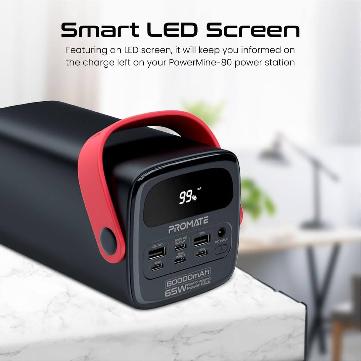 • 65W USB-C Port: The 65W USB-C Power Delivery 3.0 in/out port ensures optimal power output to charge MacBooks or other USB-C chargeable laptops, tablets, and smartphones. The PowerMine-80 fully charges in 5.5 hours using this port.