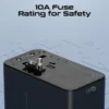 - 10A Fuse for Maximum Safety: The TripMate-GaN160 includes a 10A fuse to protect your devices from overcurrent or short circuits. Stay confident knowing your electronics are safe, whether you’re charging in a car or at a hotel.